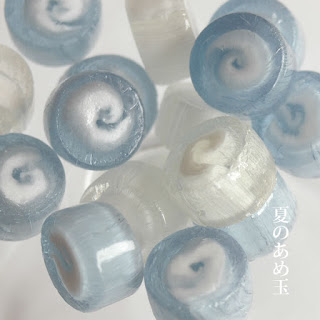 きれいなブルーと白、うずまきが涼しげ……見た目もさわやか、そして、美味しい! 塩あめなので、熱中症対策にもいいかもです。